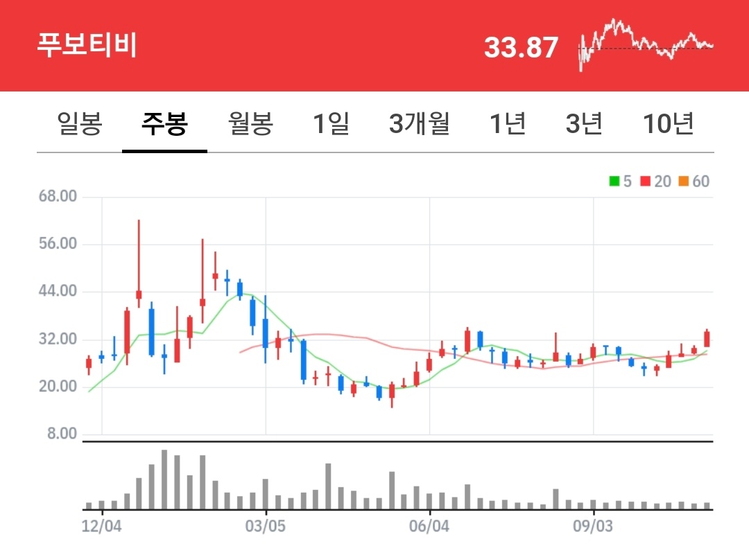 푸보 티브이는 현재 한 주당 34불 대의 가격을 횡보하고 있습니다. 시총은 5조 6천억 대입니다. 푸보 티브이는 TV 스트리밍 플랫폼으로 다양한 콘텐츠와 스포츠 베팅 서비스까지 영위하고 있습니다.